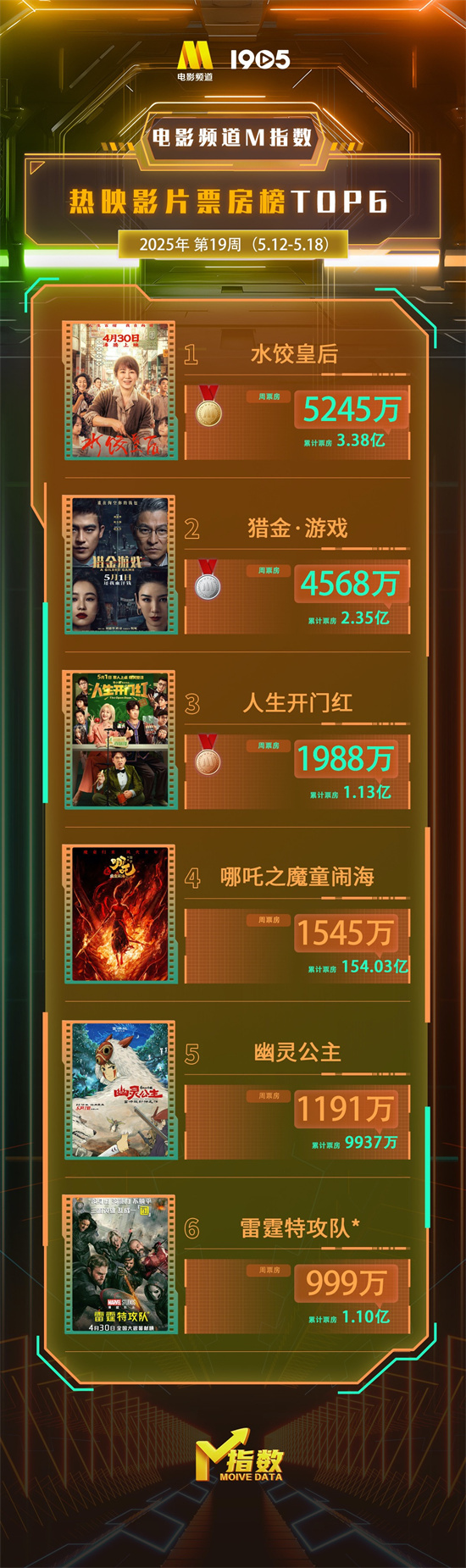 电影频道M指数2025年第19周热映影片票房榜发布